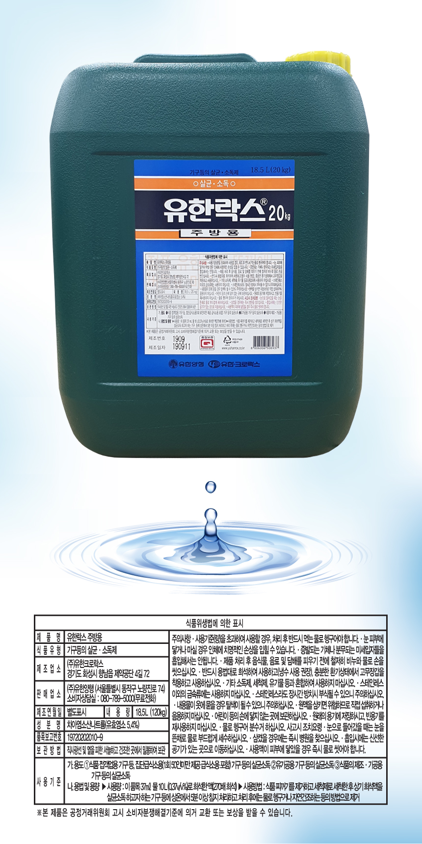 [도매직방] 유한락스 주방용 20KG 말통 이미지/