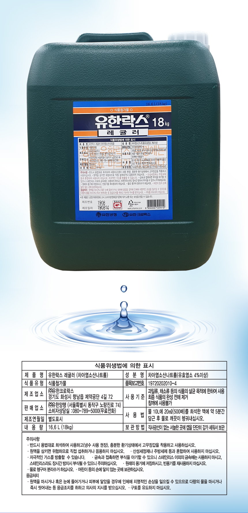 [도매직방] 유한락스 레귤러 18KG 말통 이미지/
