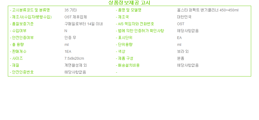 홈스타 퍼펙트 변기클리너 450ml 변기청소 욕실청소 이미지/