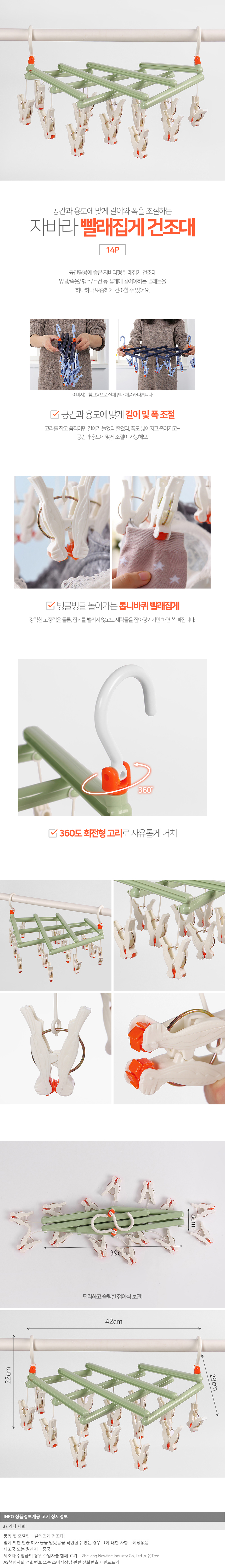 1. 품명 및 모델명 : [GTS39520] 자바라 빨래집게 건조대(14p) (그린)