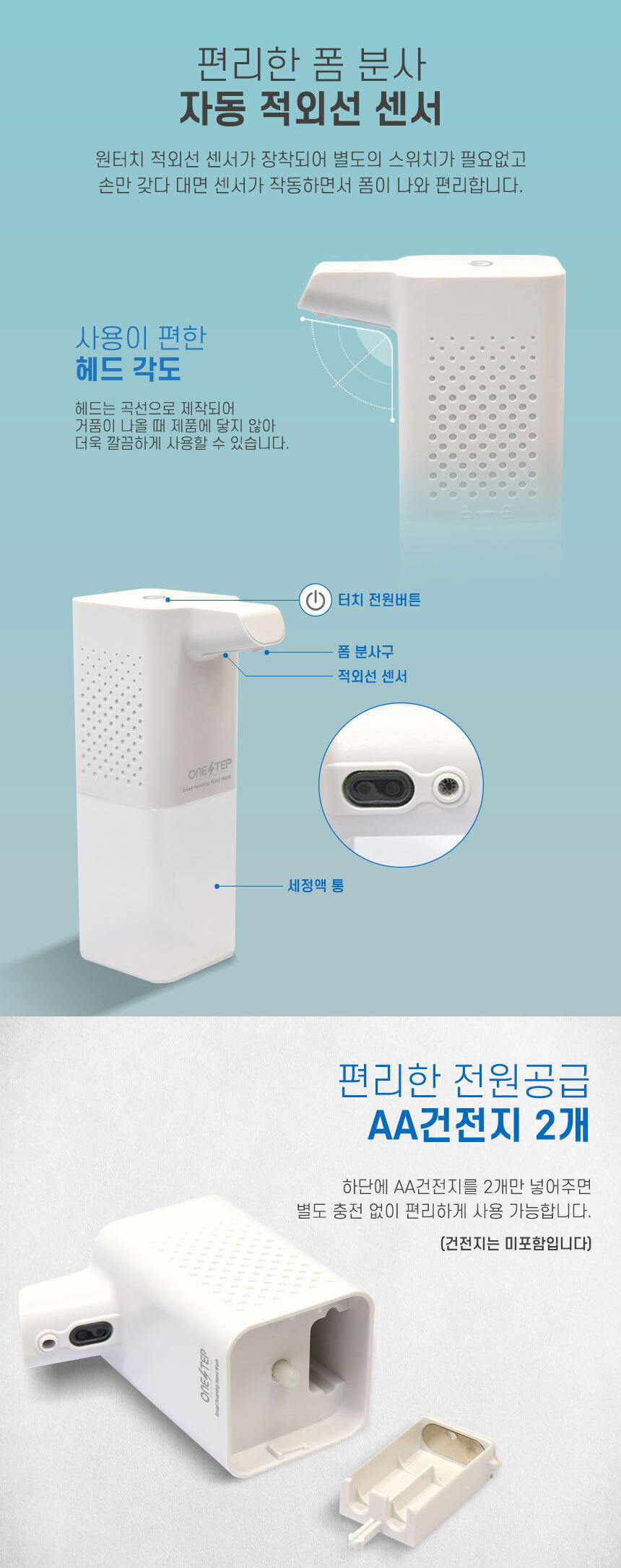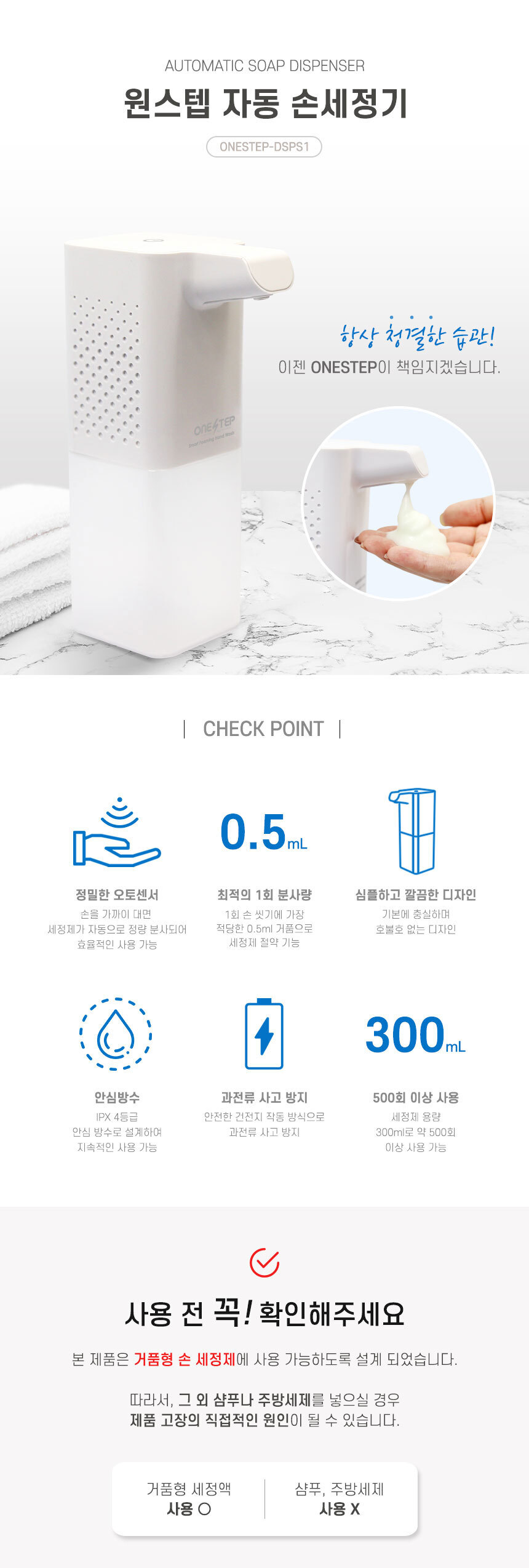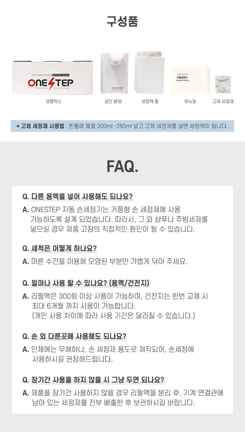 원스텝 자동 거품 핸드워시 손세정제 디스펜서