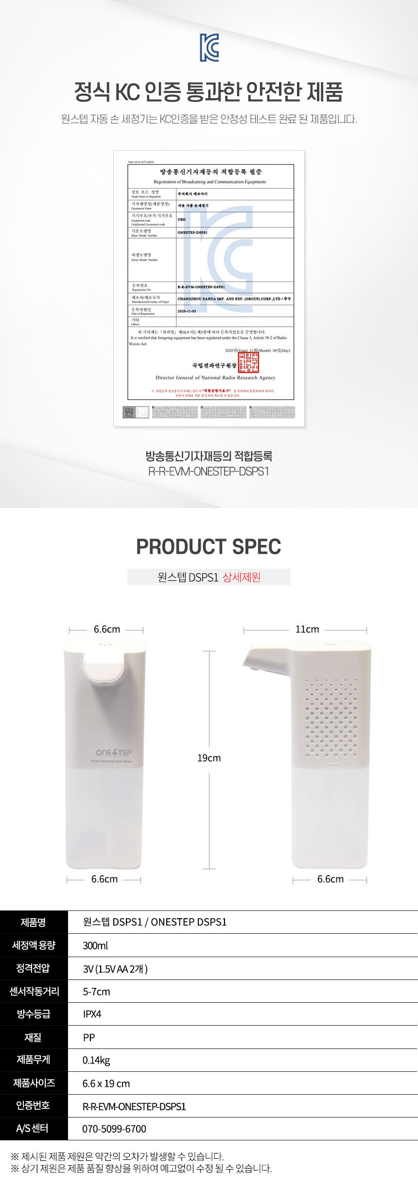 1. 품명 및 모델명 : 자동 거품 핸드워시 손세정제 디스펜서