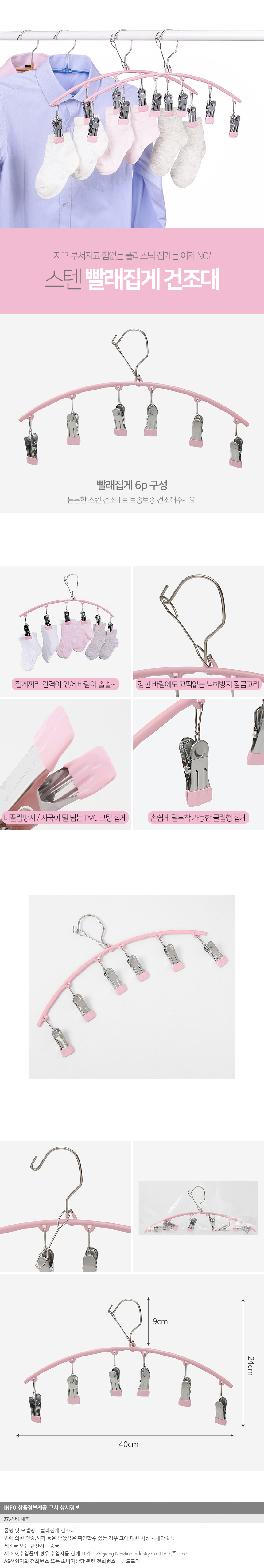 1. 품명 및 모델명 : [GTS39907] 양말 속옷 빨래집게 건조대(6p) (핑크)