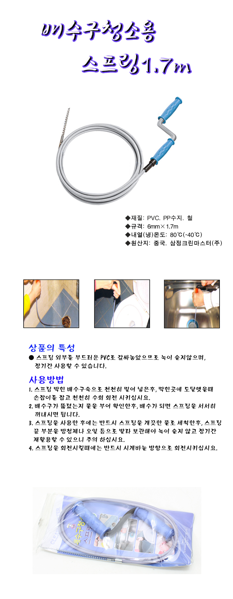 배수구 청소용 스프링 1.7m 2개 이미지/
