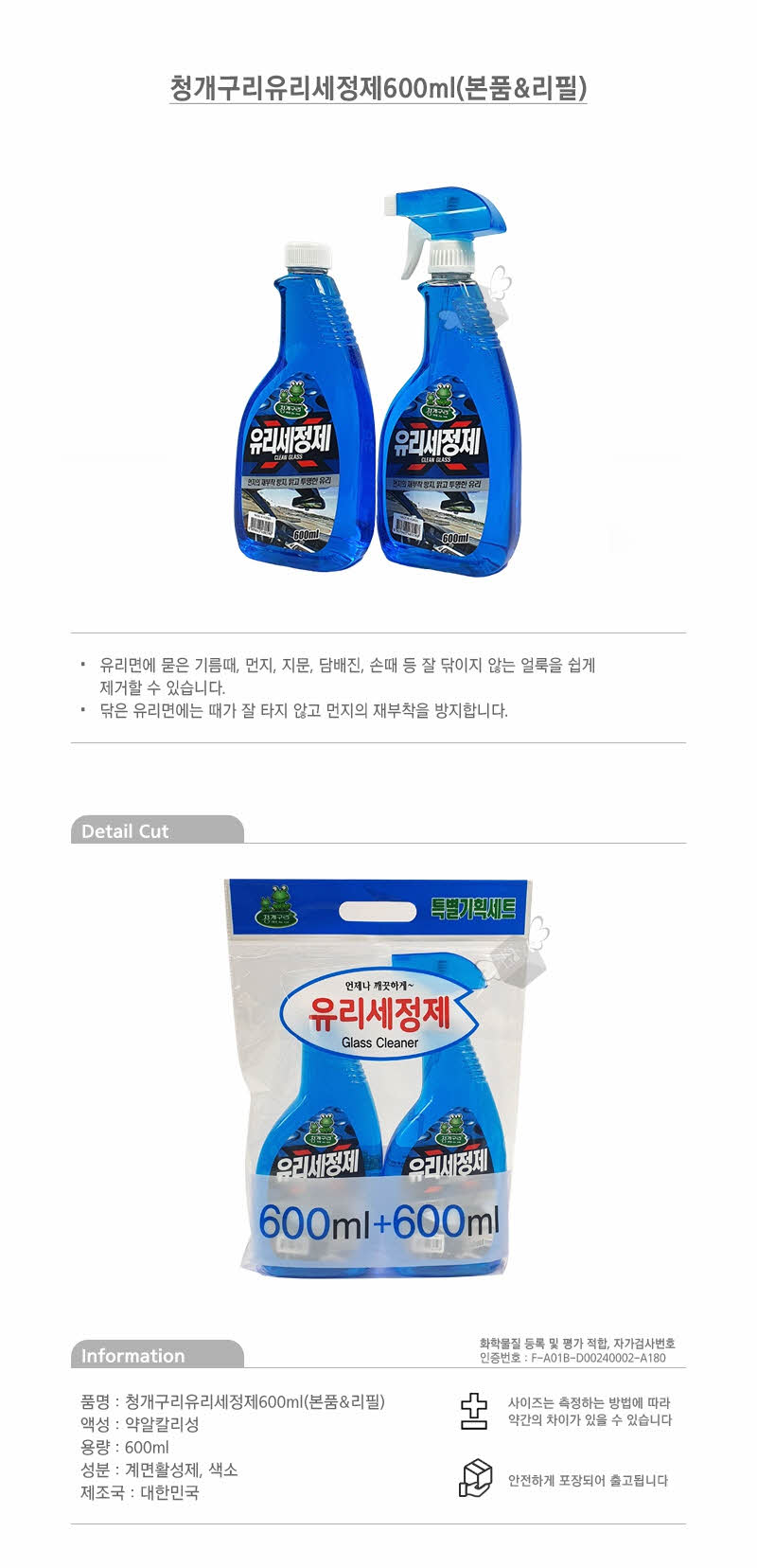 청개구리 유리세정제600ml(본품&리필) 이미지/