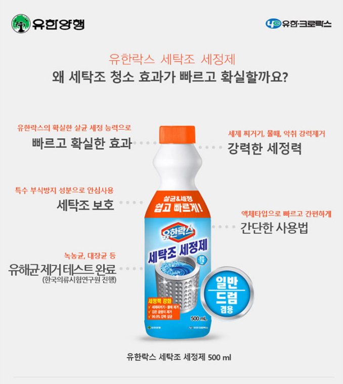 1. 품명 및 모델명 : 유한락스 세탁조세정제 500ml