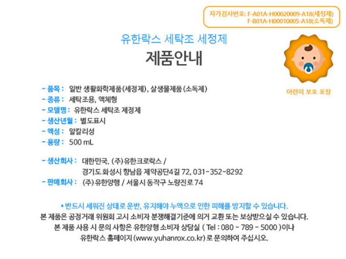 모델명 유한락스 세탁조세정제