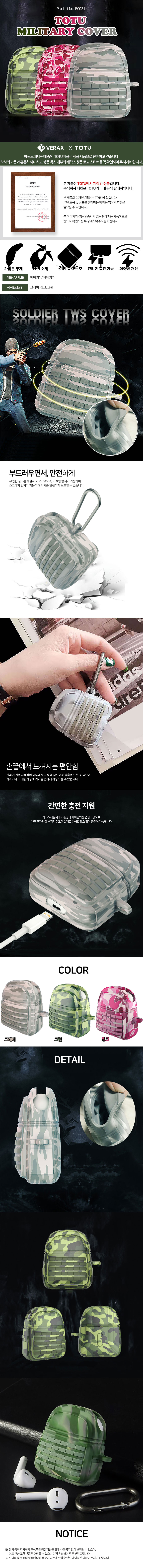 TOTU 에어팟1 2 밀리터리 미니백 실리콘 케이스 EC021