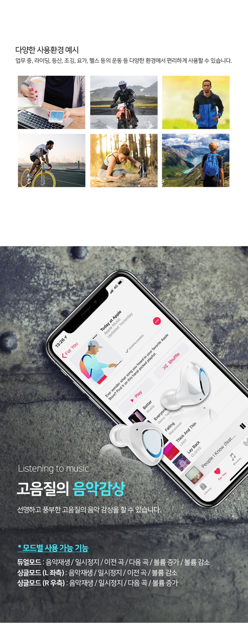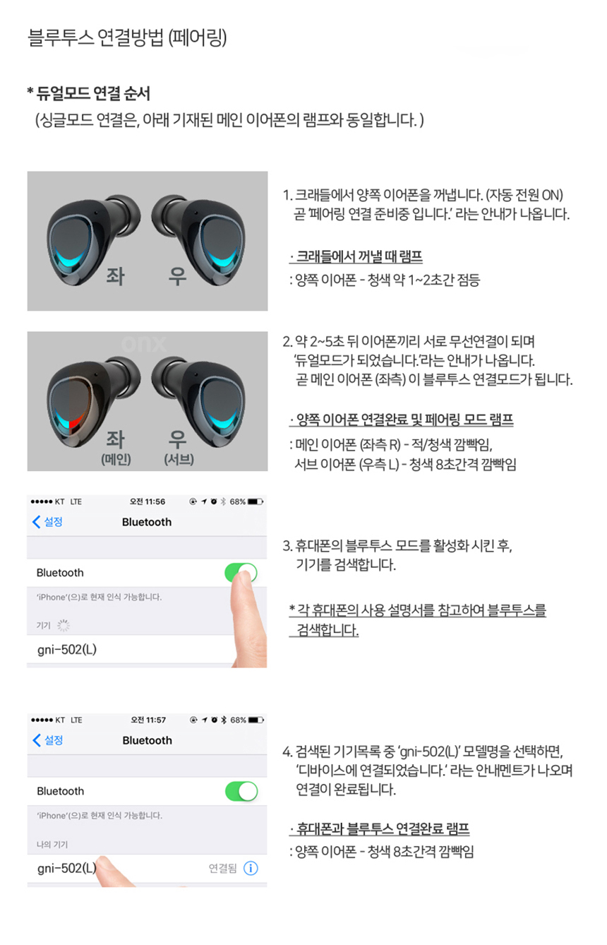 무선 블루투스 이어폰 커널형 페어링 음악감상