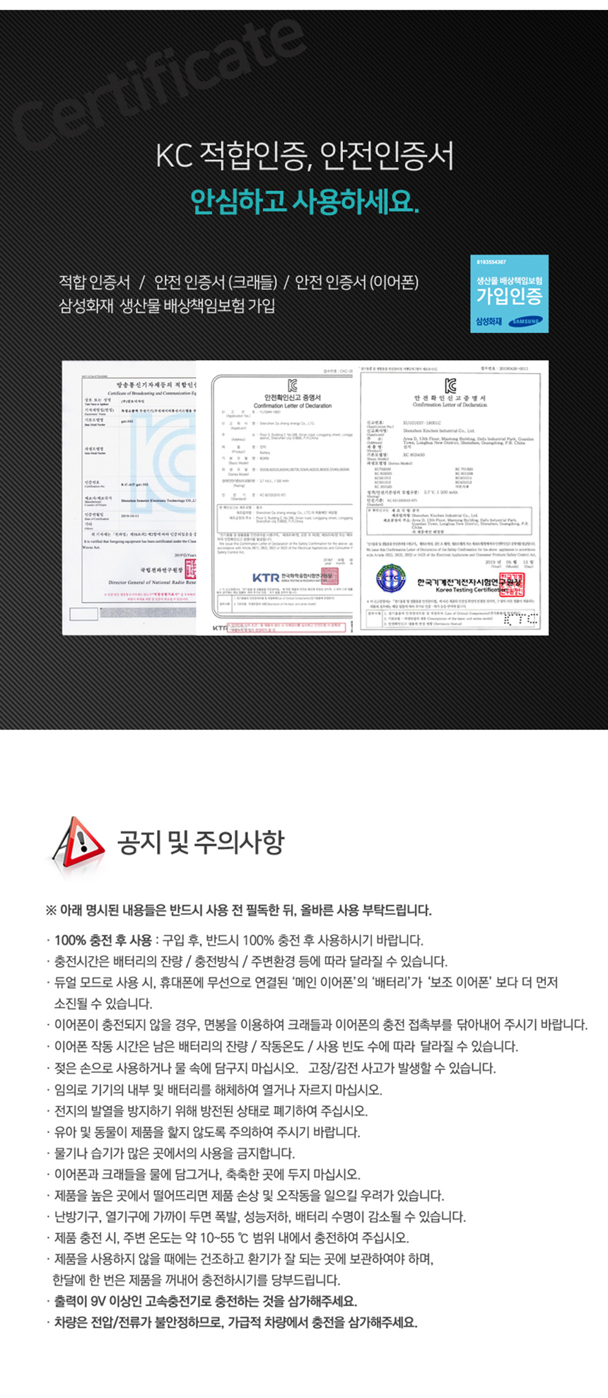 • 초기제품 이상의 경우 동일한 제품으로 1:1 교환원칙, 사용후 제품이상은 A/S를 원칙으로 합니다.