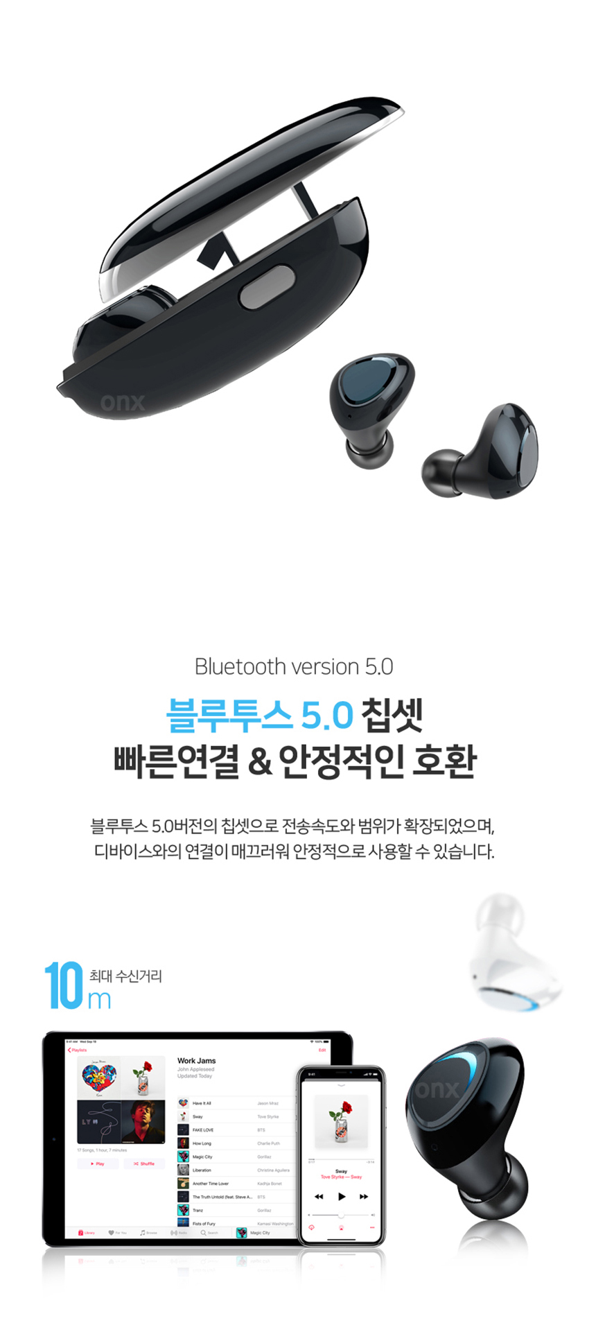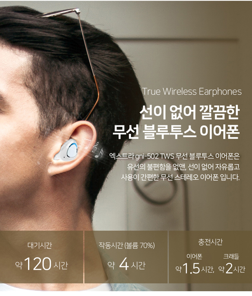 무선 블루투스 이어폰 커널형 페어링 음악감상 이미지/