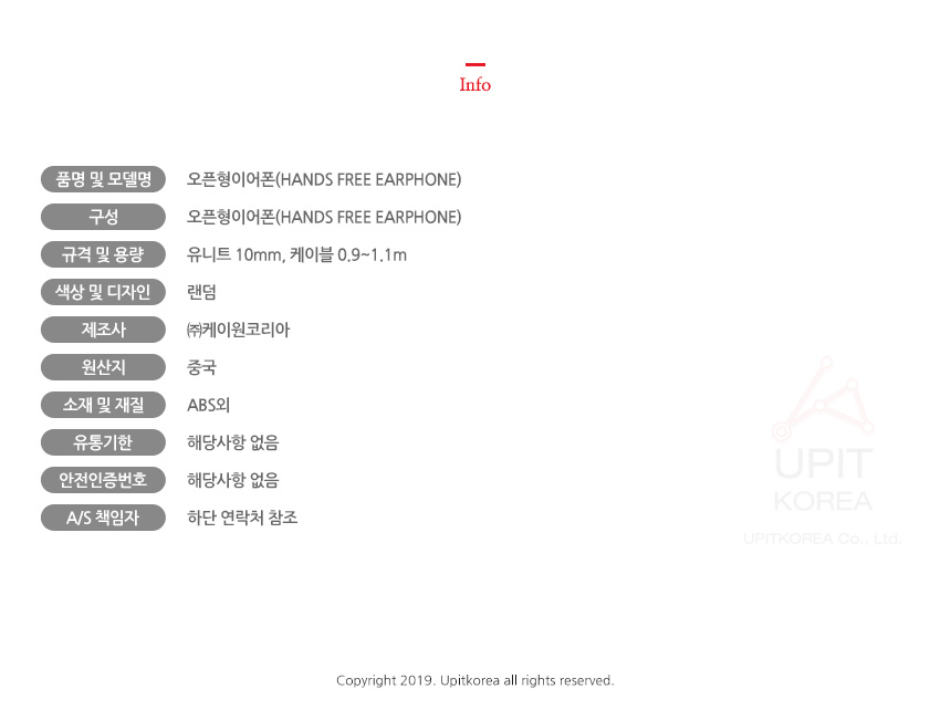 오픈형이어폰(HANDS FREE EARPHONE) 7578 이미지/