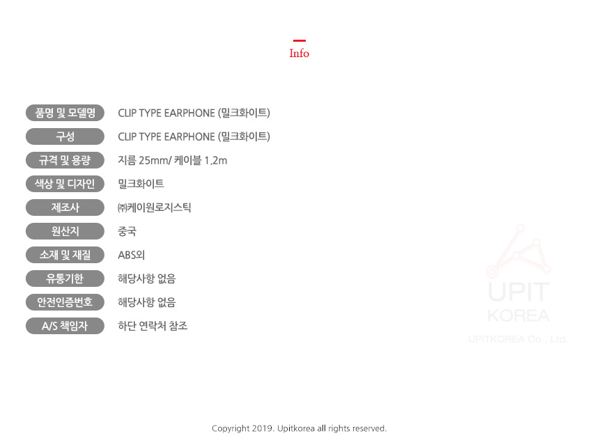 CLIP TYPE EARPHONE (밀크화이트) 4768 이미지/