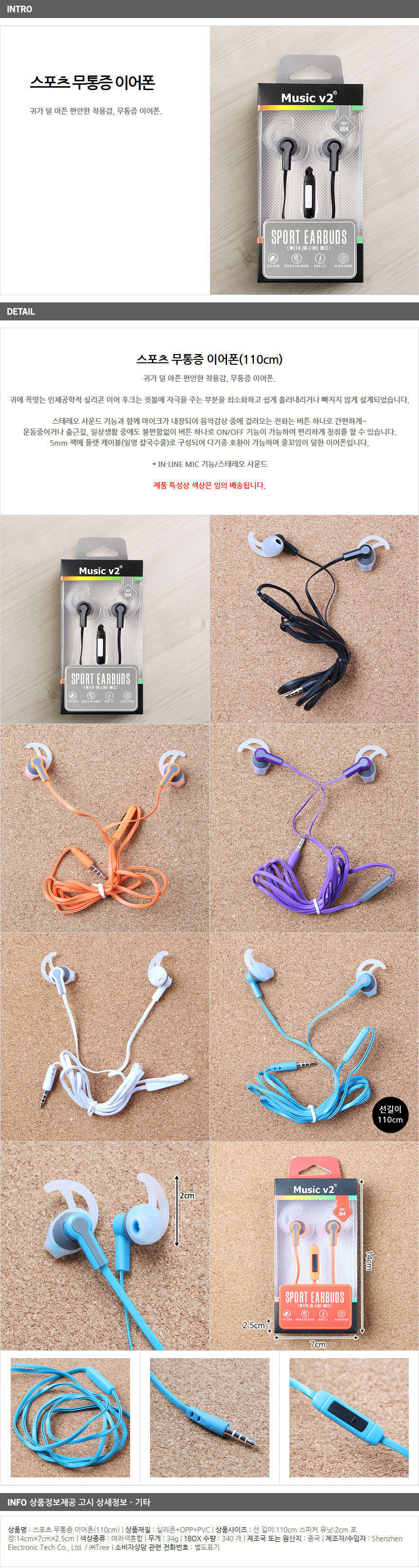 스포츠 무통증 고음질 이어폰 (110cm) 이미지/