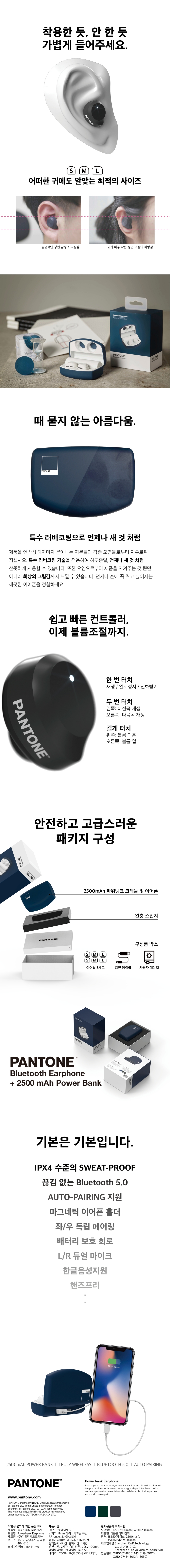 PANTONE 팬톤블루투스이어폰 무선 PTB-02