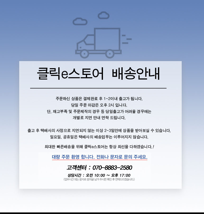 • 주말 또는 연휴 기간에는 배송이 다소 지연될 수 있습니다.