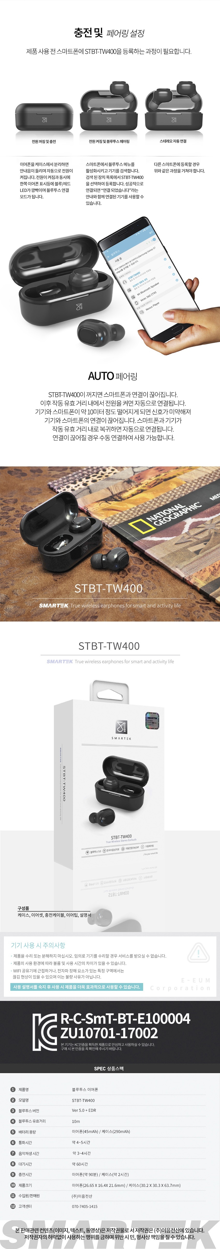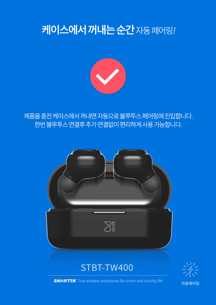 1. 품명 및 모델명 : STBT-TW400 완전무선 블루투스 이어폰 TWS
