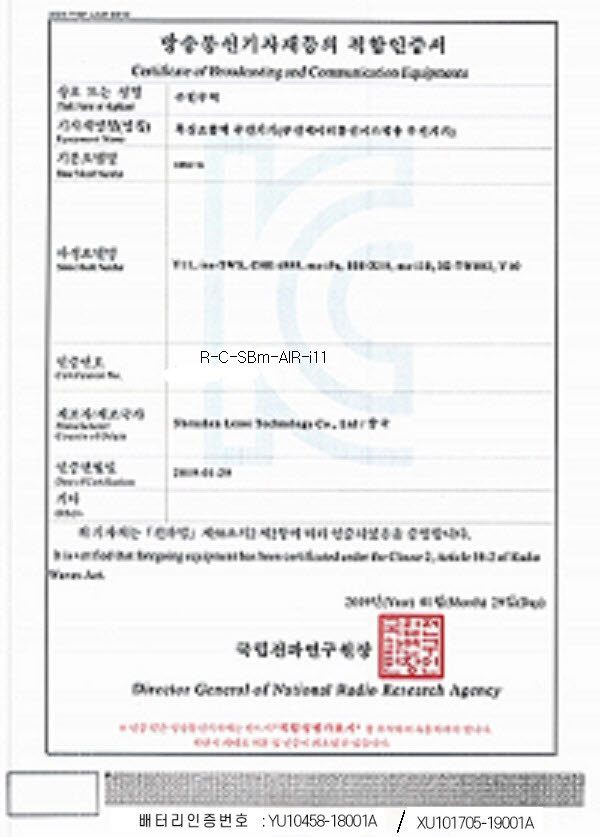 인증정보 전기용품안전인증(KCC) (인증번호: YU10458-18001A)