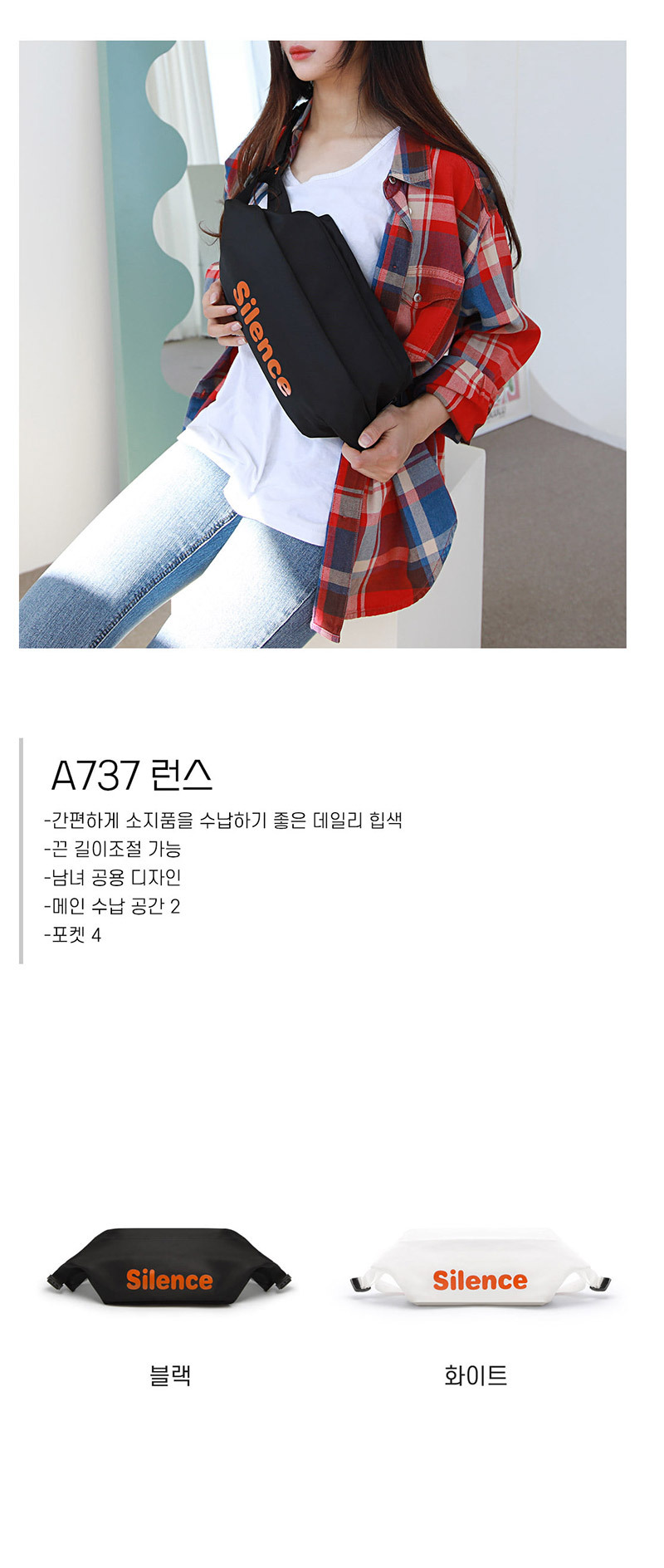 A737 캐주얼한 디자인 데일리 남녀공용 힙색 슬링백 이미지/