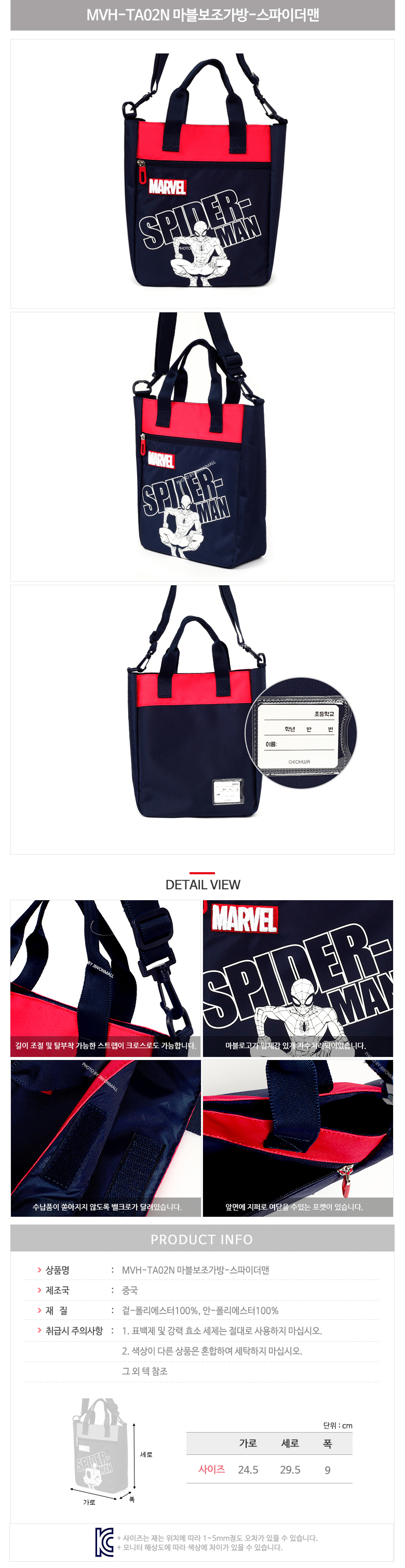 스파이더맨 신학기 입학선물 초등학생 마블보조가방 이미지/