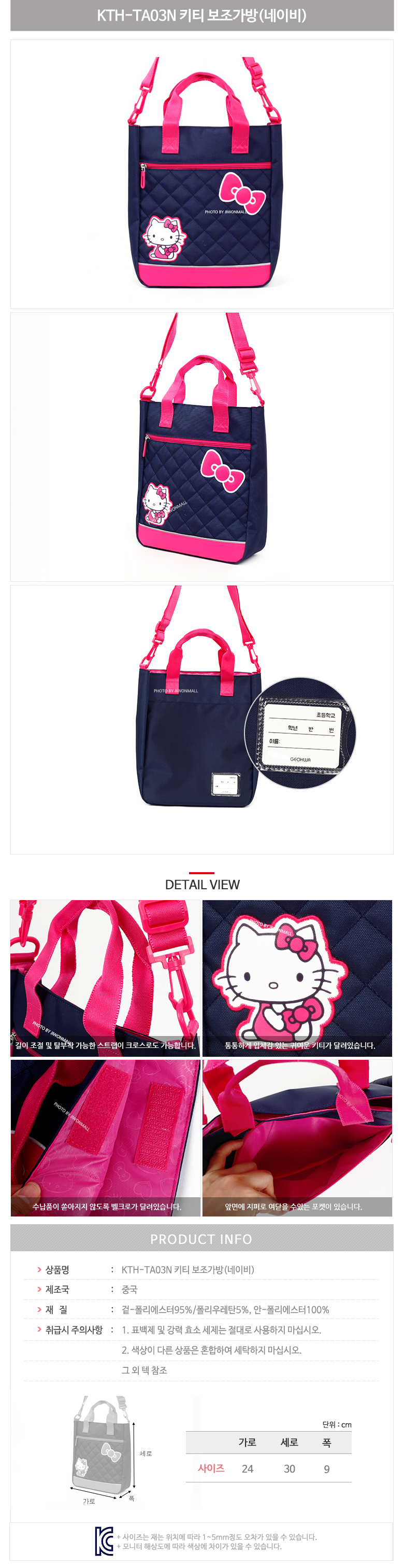 보조가방 신학기 입학선물 초등학생 네이비 키티 이미지/