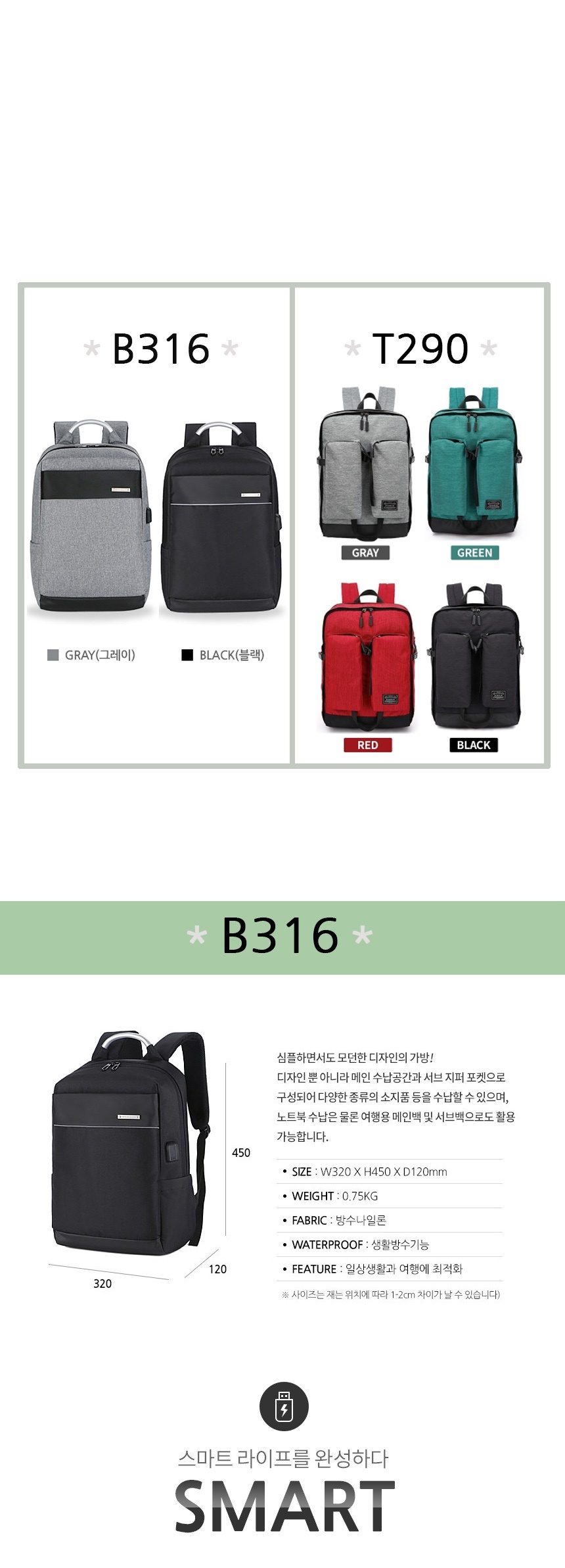 백팩 가방 수납 여행용 캐주얼 데일리 노트북 대학생