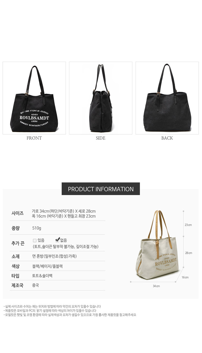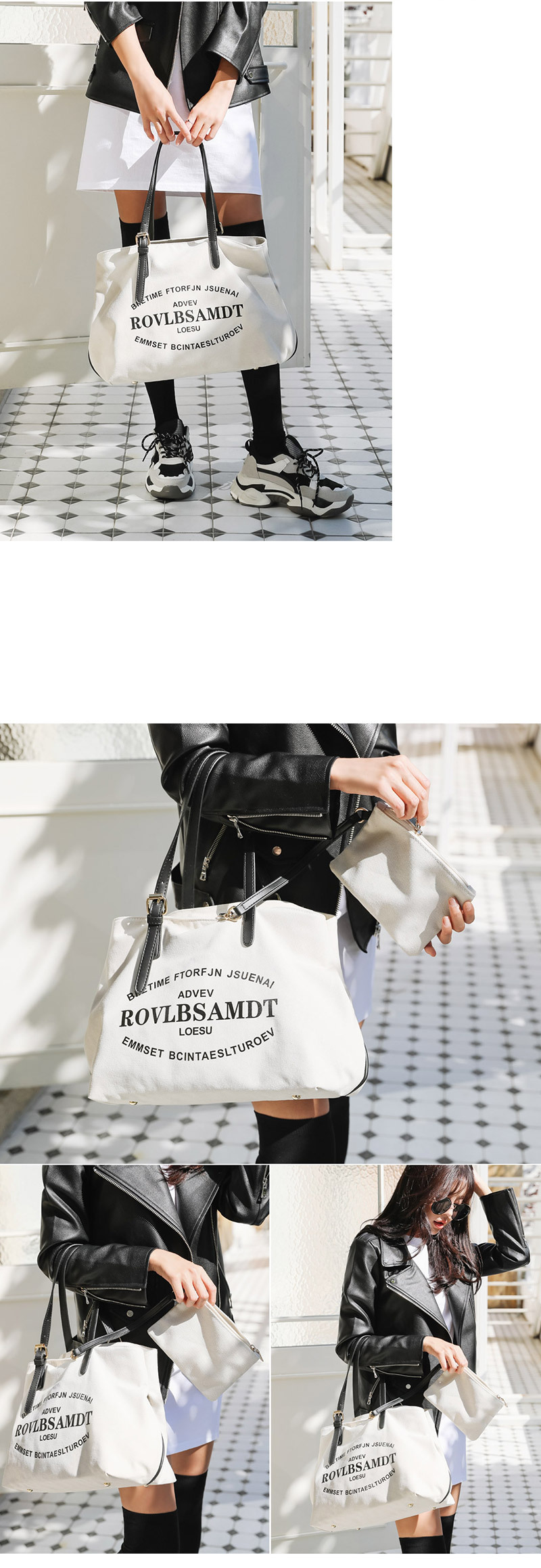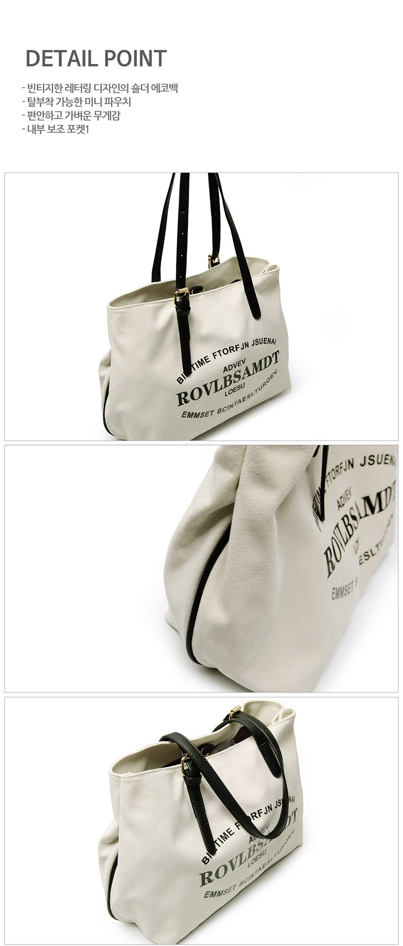 A629 빈티지 레터링 숄더에코백 미니파우치 포함 이미지/
