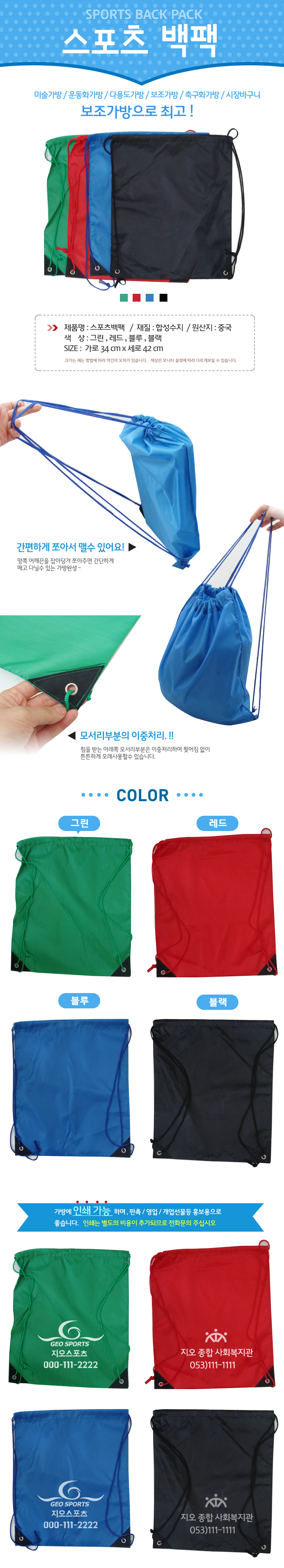 보조가방[스포츠백팩]보조가방/보조가방/신발주머니/장바구니/시장바구니/신발주머니/인쇄가능