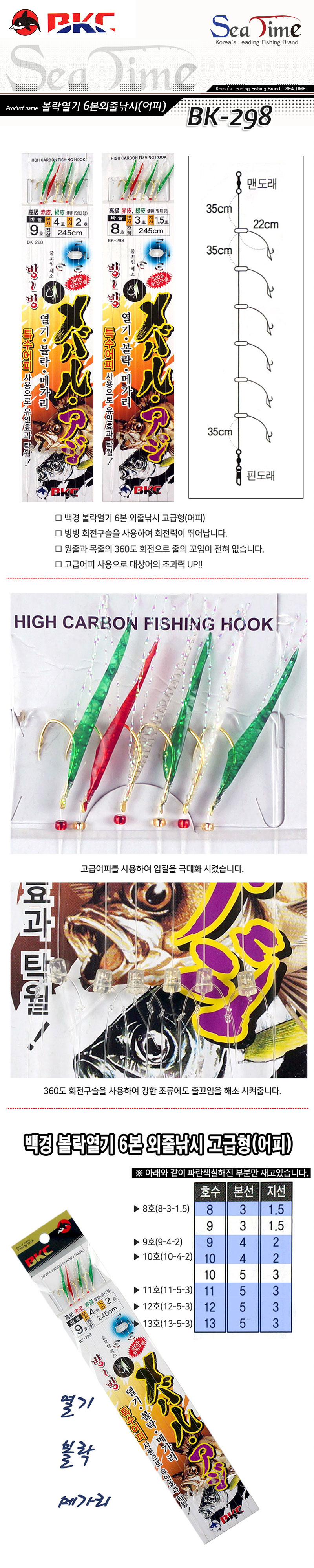 BKC 백경 열기볼락 6본 외줄낚시(어피) 릴낚시 바다 민물
