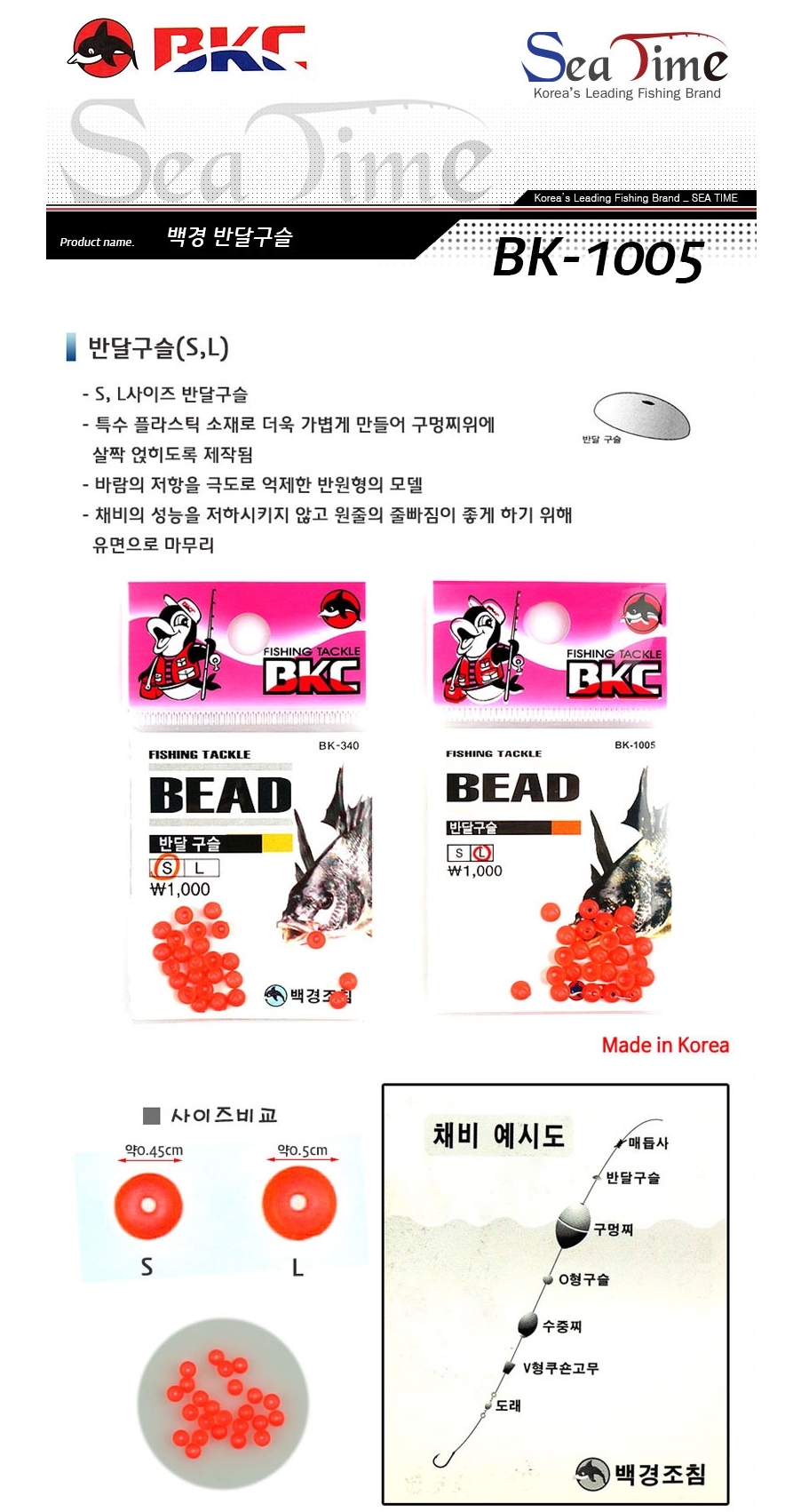 BKC 백경 반달구슬 사이즈 BK1005 S L