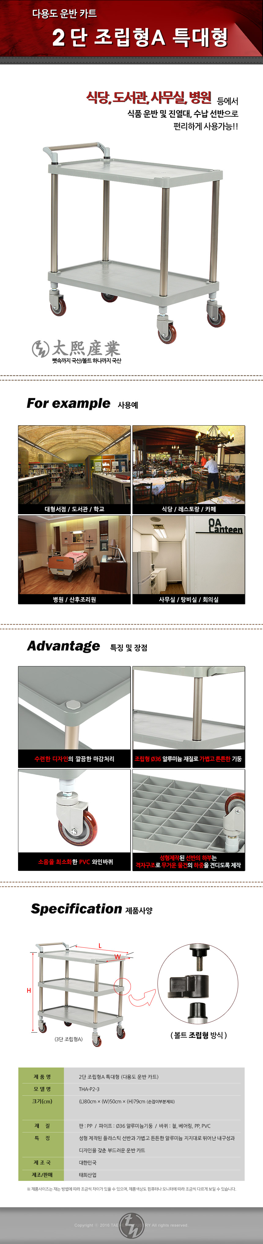 특대형 2단 카트 조립형A 태희산업 다용도