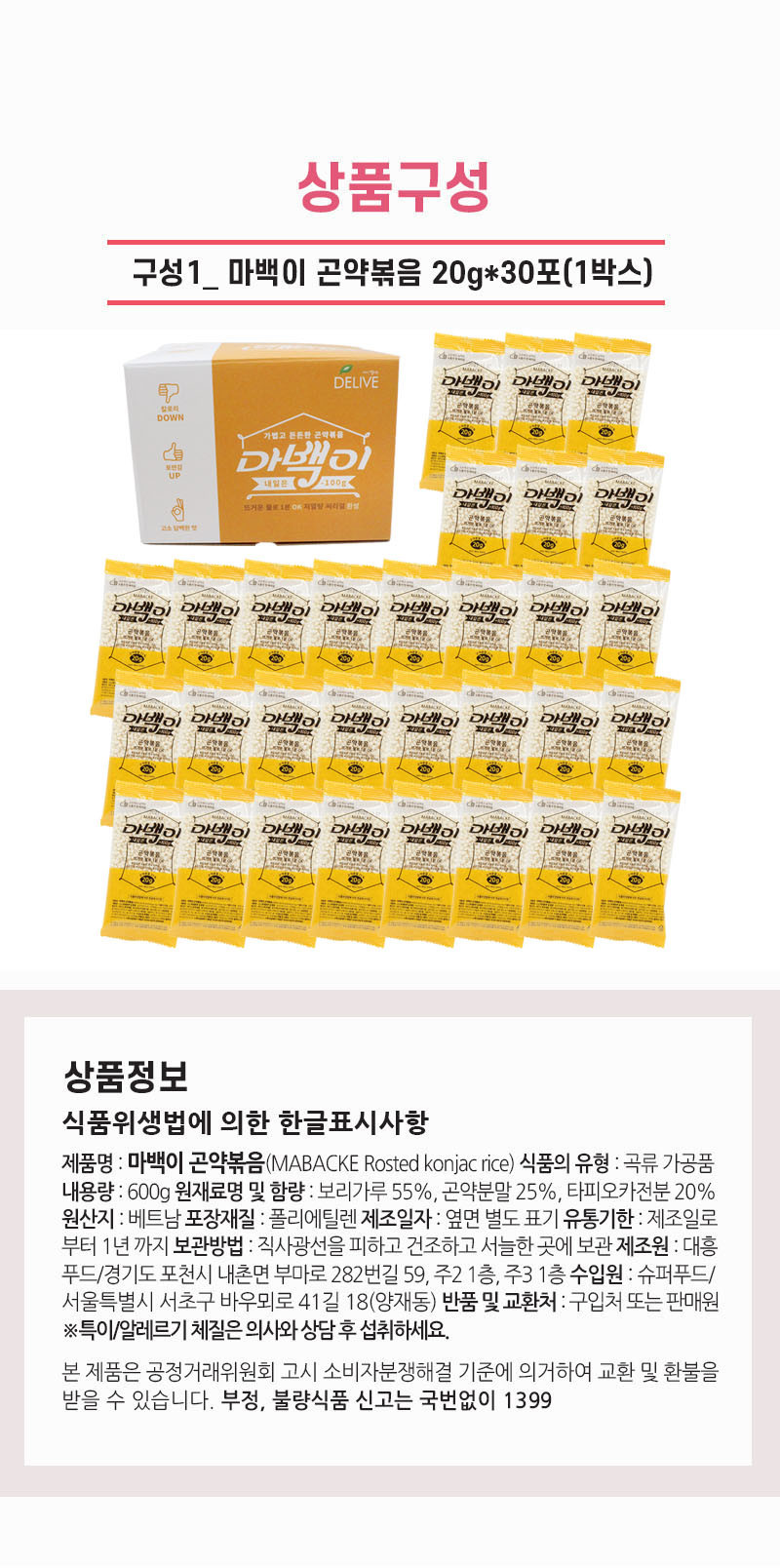 곤약볶음 곤약씨리얼 마백이 20g 30봉 이미지/