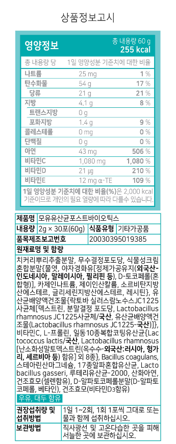 섭취량,섭취방법 및 섭취시 주의사항 상품 상세설명에 표시