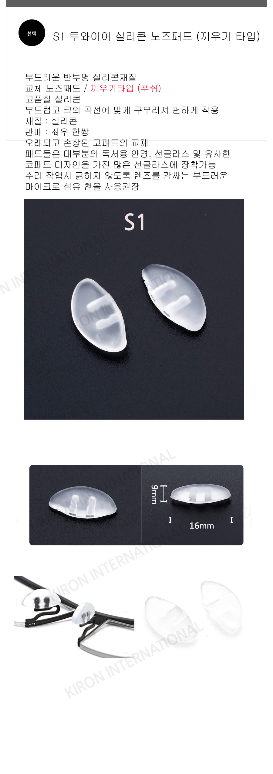 수리 용품 코받침 S1 실리콘 안경 선글라스 코패드