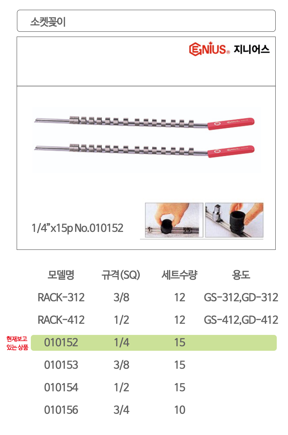 지니어스 소켓꽂이 NO.010152 1/4x15P 이미지/