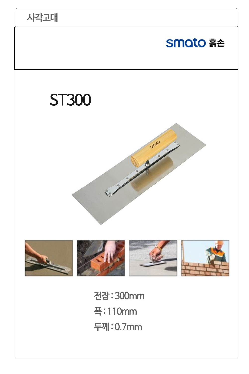 스마토 흙손 미장 미장칼 사각고대 300x110x0.7mm