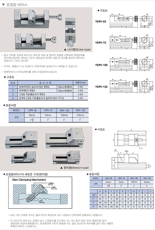 용수공업 초정밀바이스 YSPV-6575100125 나사형