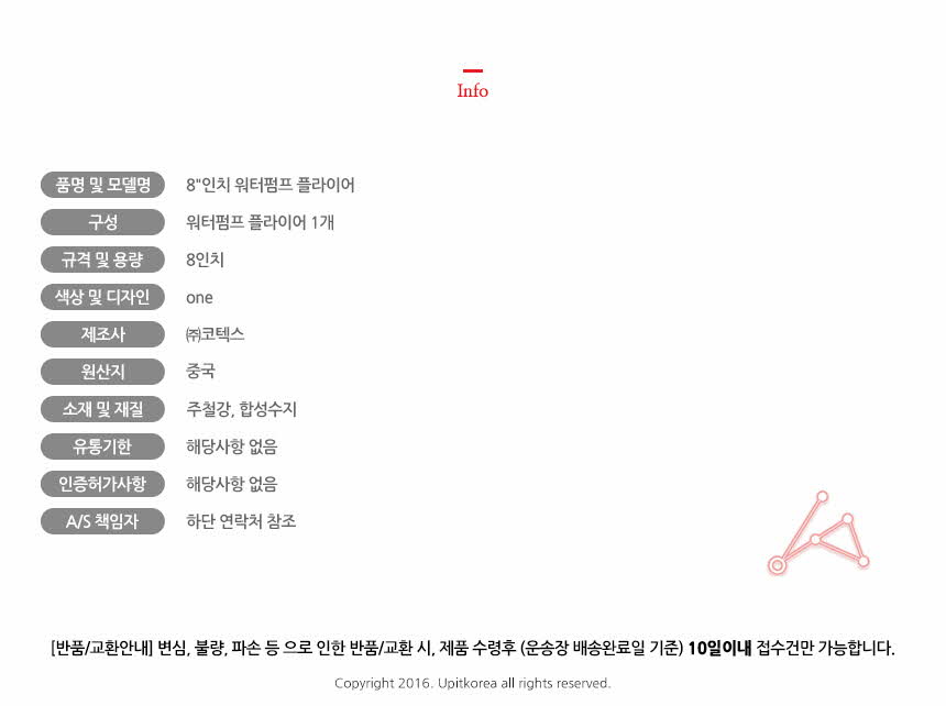 • 반품/환불조건: 도착후 1주일 이내 사용하지 않은 상태에서 가능합니다,초기제품 이상의 경우 동일한 제품으로 1:1 교환원칙, 사용후 제품이상은 A/S를 원칙으로 합니다,