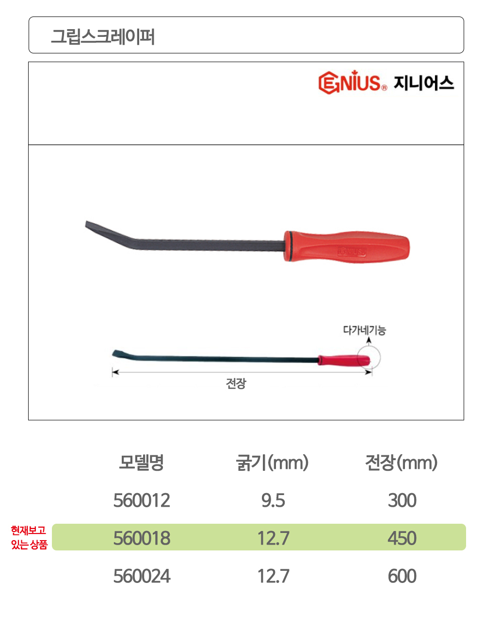 지니어스 그립스크레이퍼 스크레빠 560018 12.7x450mm 이미지/