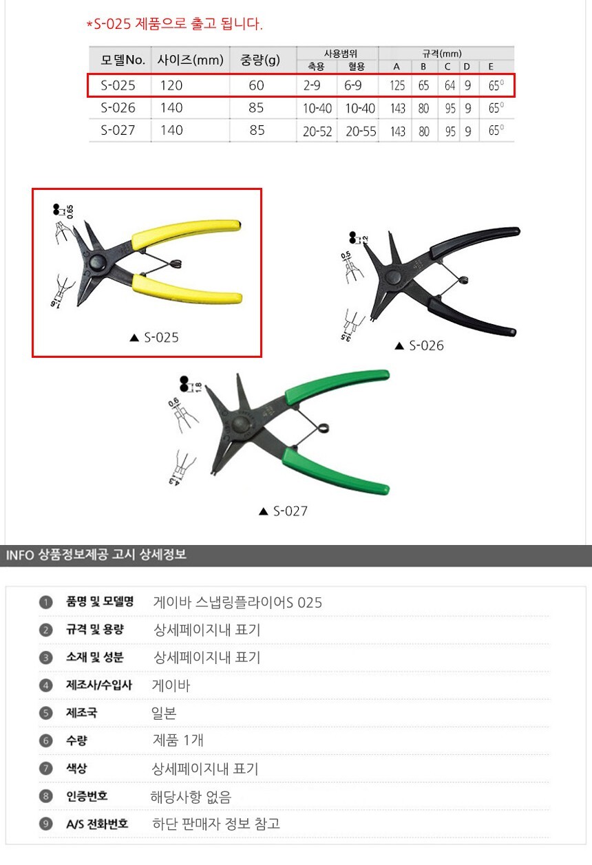 게이바 스냅링플라이어S 025 공구 수공구 수작업공구 수작업 작업공구