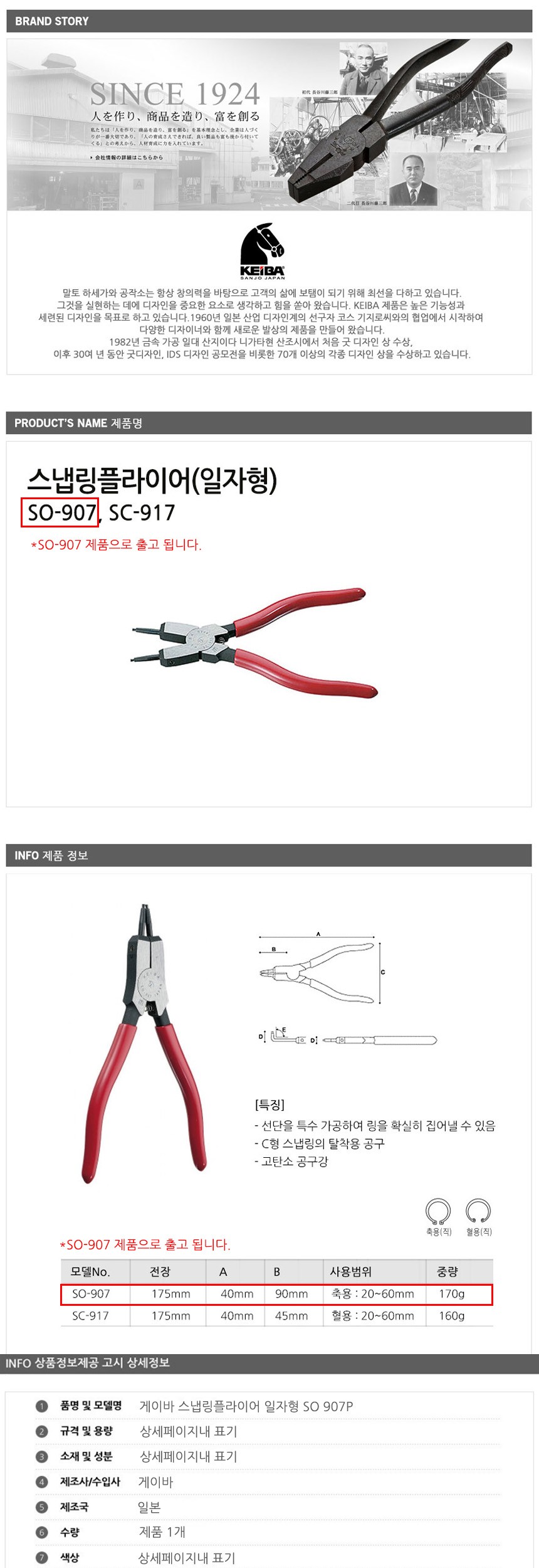 게이바 스냅링플라이어 일자형 SO 907P 공구 수공구 수작업공구 수작업 작업공구 이미지/