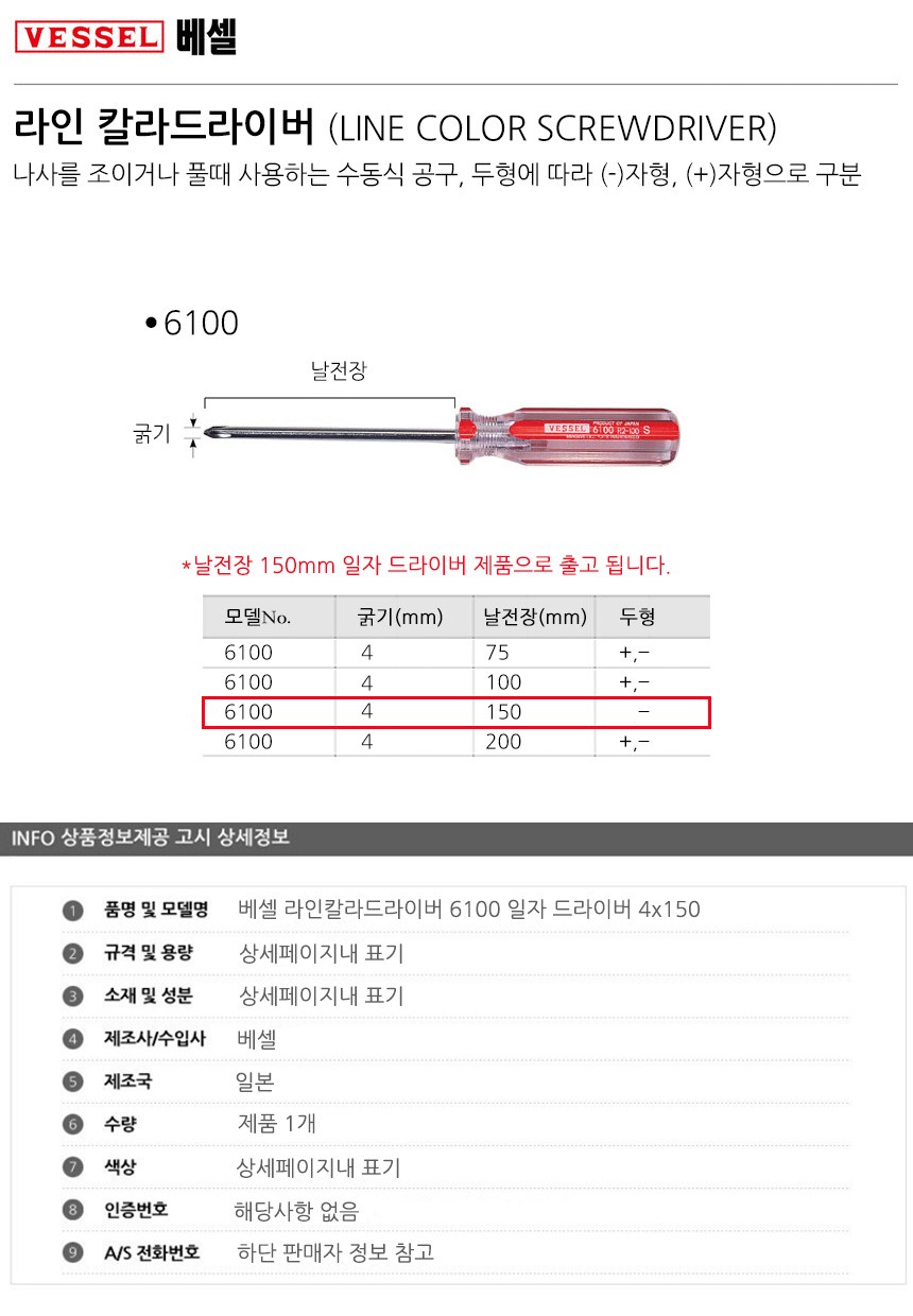 베셀 라인칼라드라이버 6100 일자 드라이버 4x150 공구 수공구 수작업공구 수작업 작업