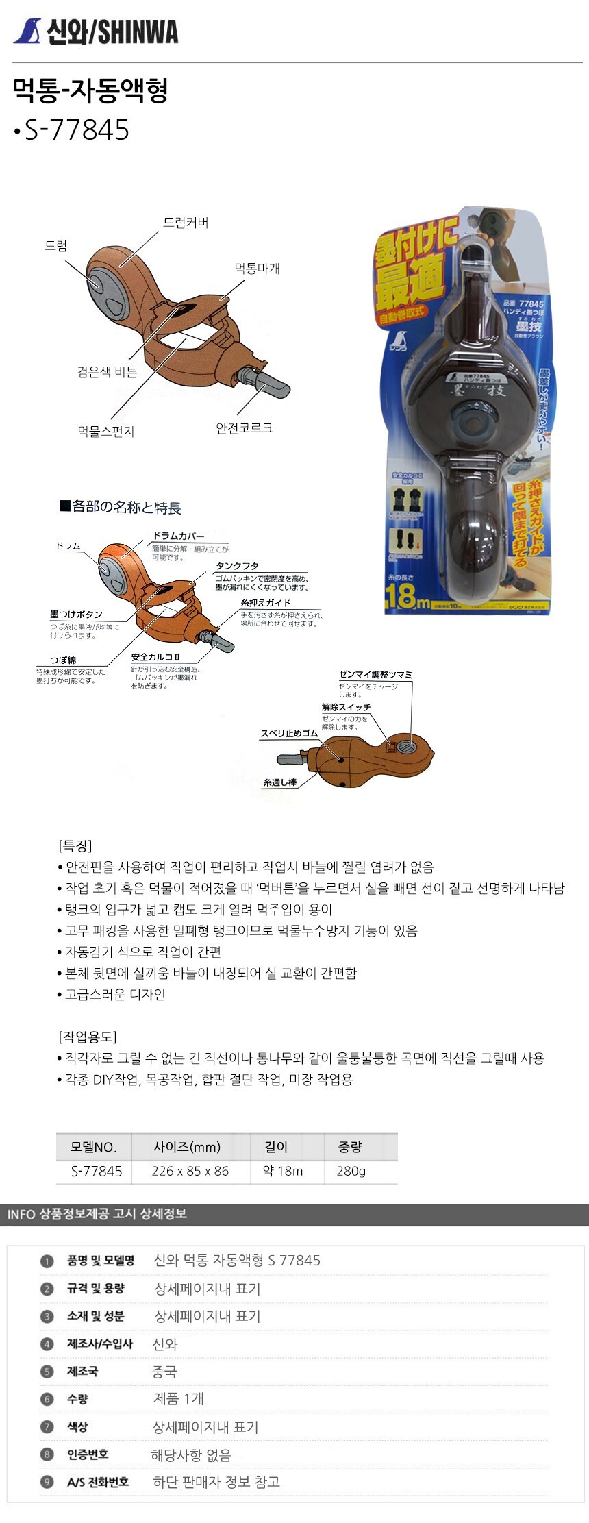 신와 먹통 자동액형 S 77845 먹통 자동먹통 신와측정 수작업 작업공구 이미지/