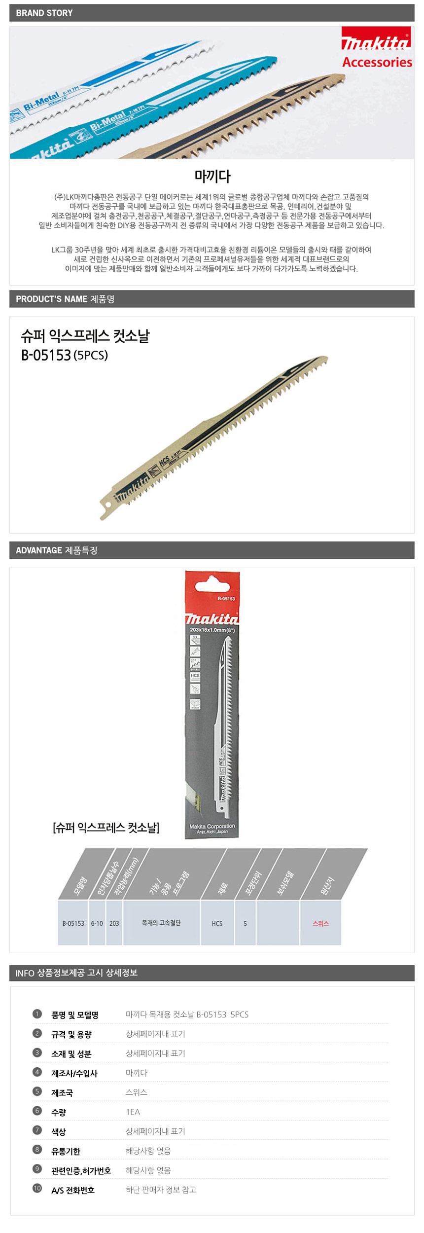 마끼다 목재용 컷소날 B-05153 5PCS 공구악세사리 컷소 절삭공구 절단공구 커터기