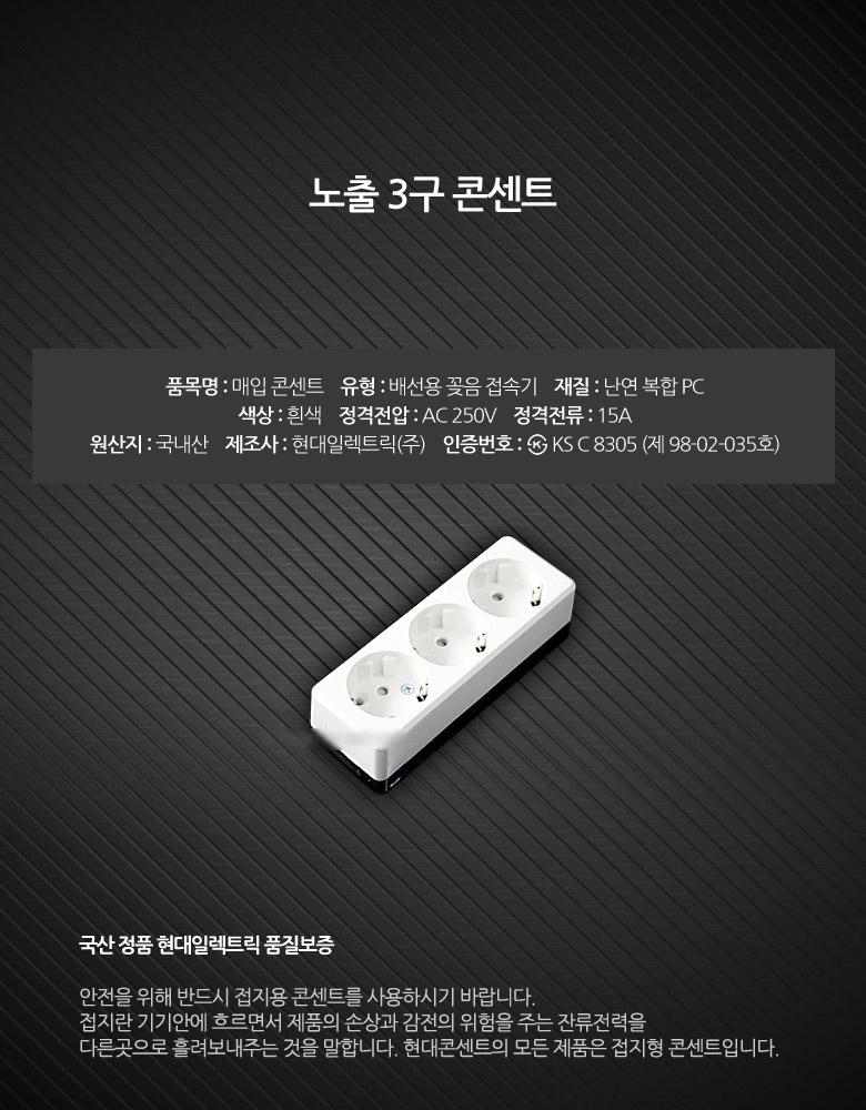 현대 노출3구콘센트 산업용품 전기용품 이미지/