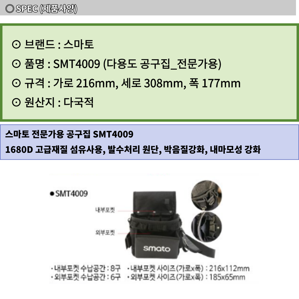 스마토 다용도 휴대용 전문가용 공구집 SMT4009 이미지/