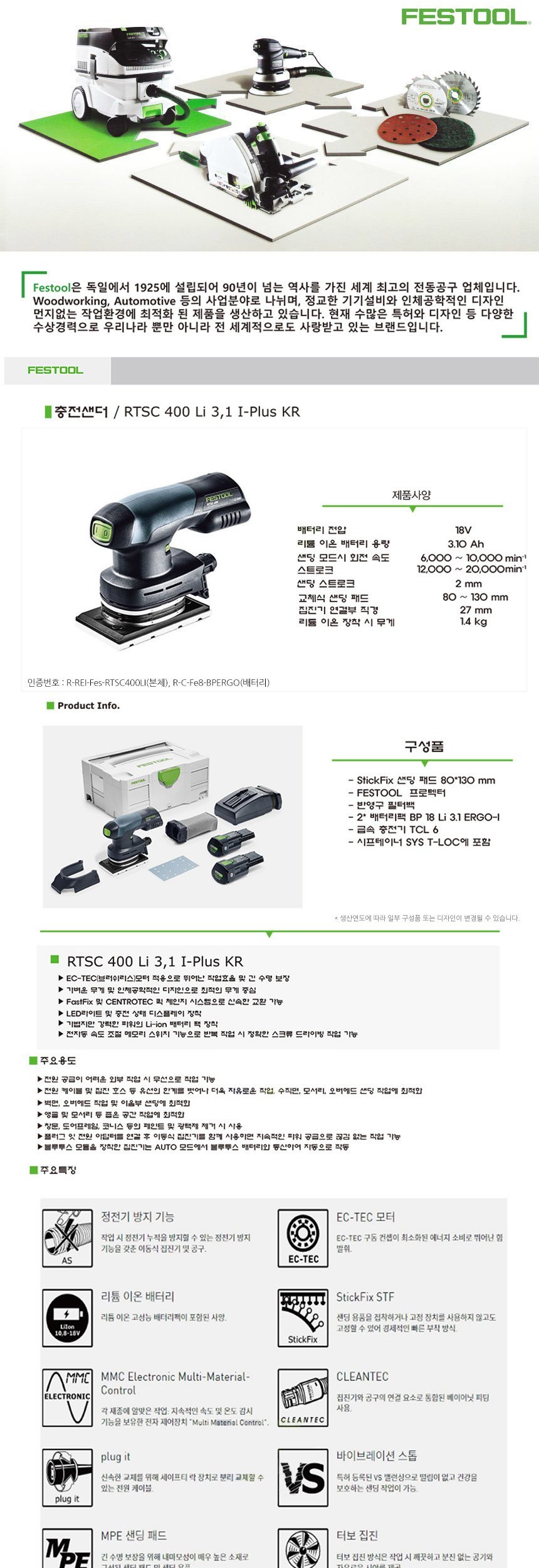 페스툴 충전 사각샌더 RTSC 400 Li 3.1 I Plus KR 이미지/