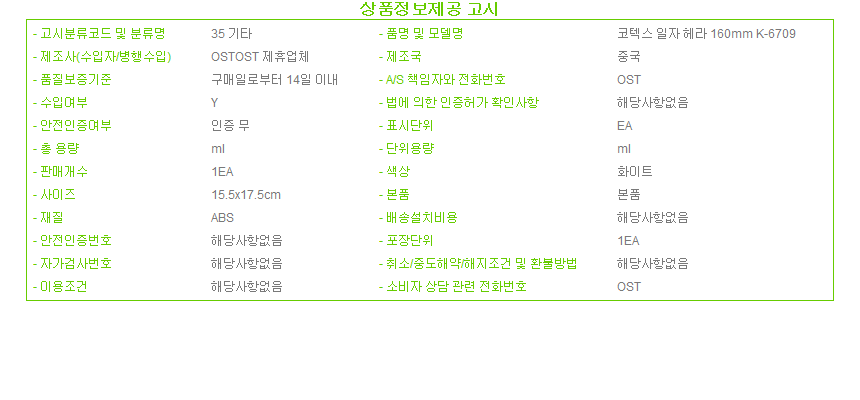 제조자 상품상세설명에 표기