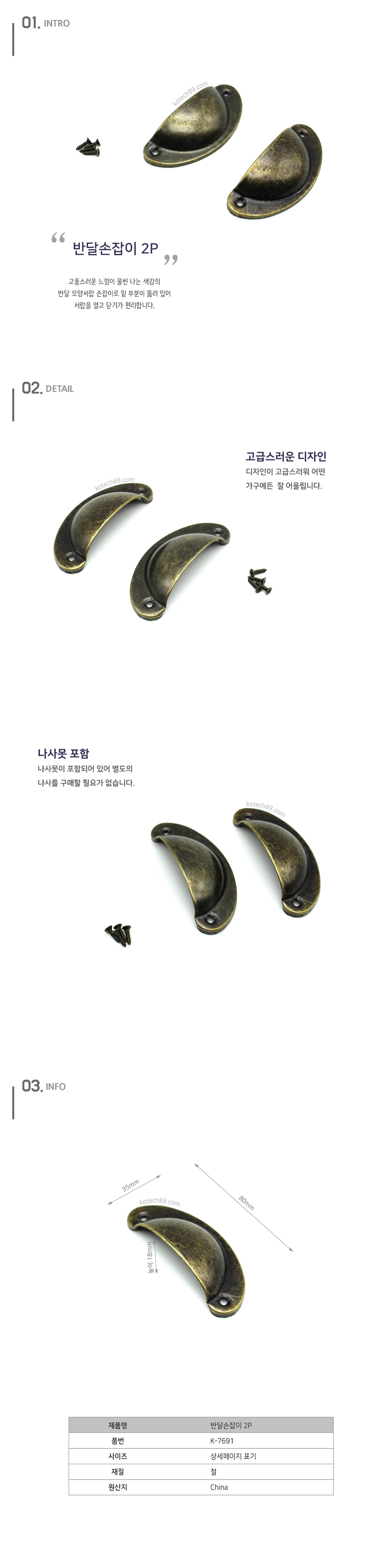 반달 서랍손잡이 2개입 K-7691 가구 DIY 이미지/