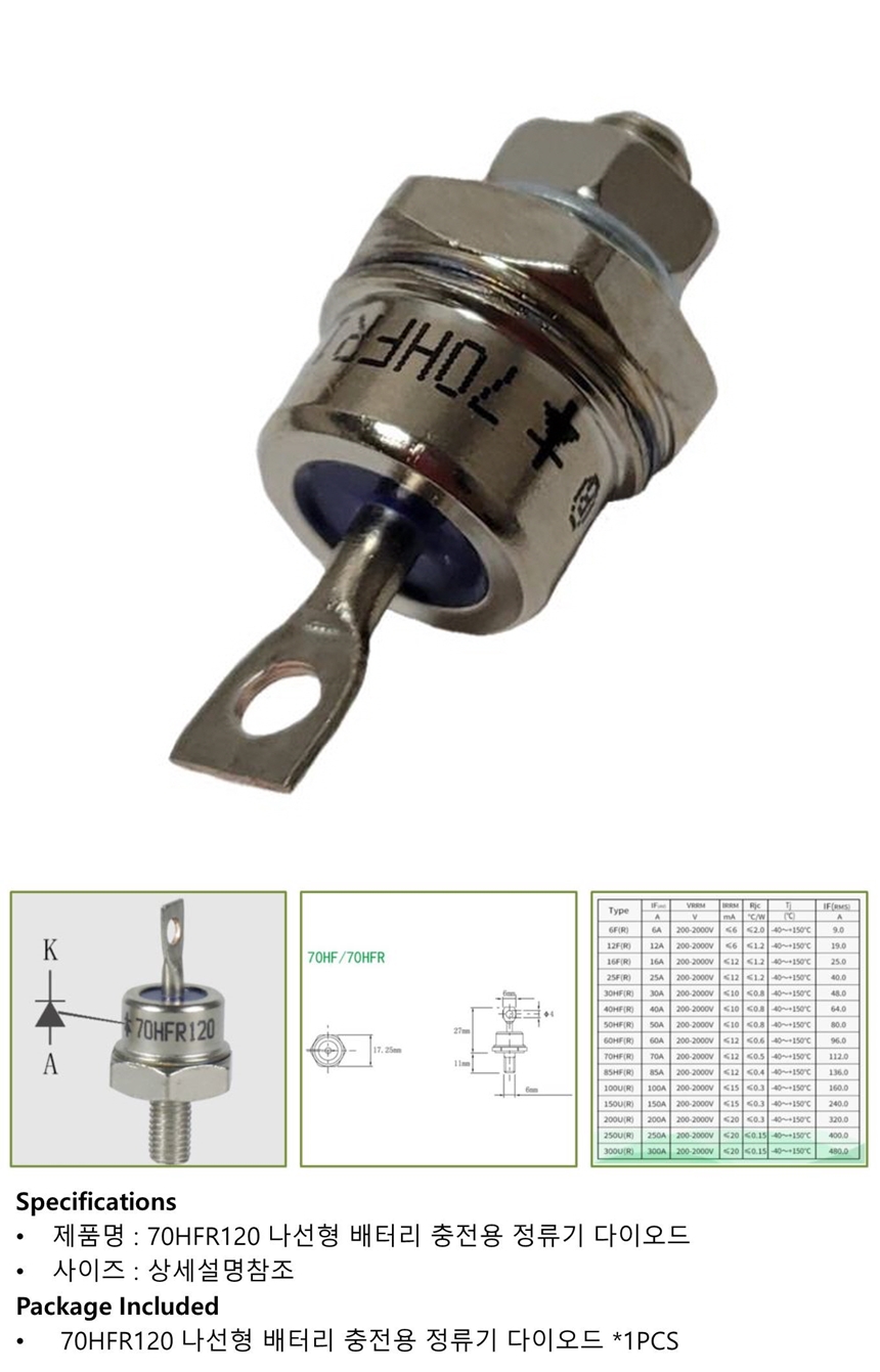 70HFR120 배터리 충전용 정류기 다이오드 1pcs 이미지/